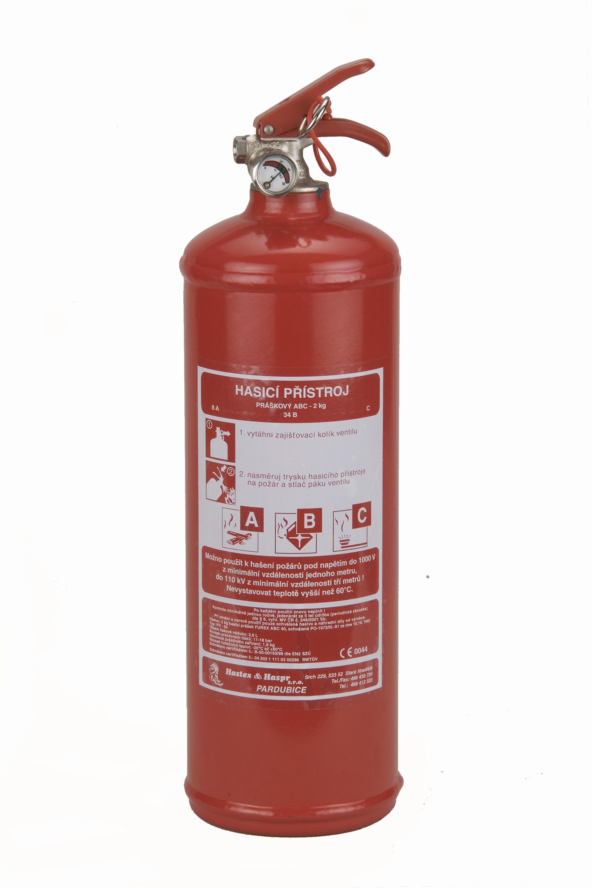Hasicí přístroj obsahuje 2 kg hasicího prášku ABC. Ideální použití je v domácnostech, osobních automobilech a garážích. Jedná se o přístroj pod stálým tlakem. Hodnotu tlaku je možné kontrolovat na manometru instalovaném do ventilu. Přístroj byl certifikován dle evropské normy ČSN EN -3 .